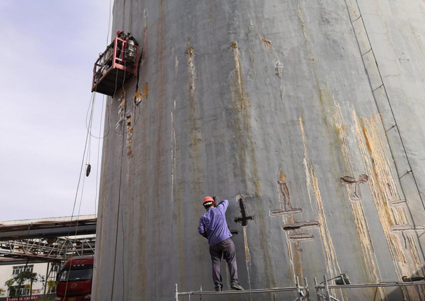 6月9日下午,公司黨委書記、董事長董紅健帶隊到公司建筑和設備防腐研究所承攬的西部礦業鋅業分公司儲液罐漏液防腐維修項目工地進行檢查,公司財務部部長汪繼祥、建筑和設備防腐研究所所長陳鐵海陪同檢查。