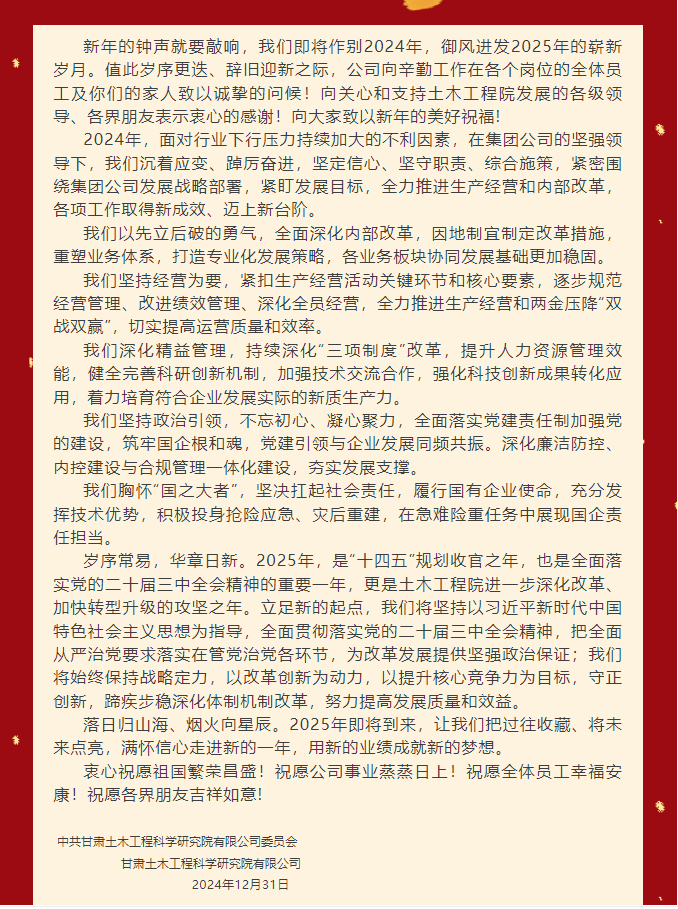 甘肅土木工程科學研究院有限公司2025年新年致辭