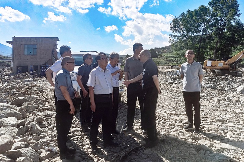 8月11日,甘肅工程咨詢集團黨委書記、董事長張佩峰,總經理、董事陳一夫率隊深入榆中縣小康營鄉南北關村、馬坡鄉馬蓮灘村等洪澇重災區,全面督導災害評估和災后重建技術咨詢服務工作。副總經理曹慶,黨委委員、副總經理賈志堅參加。